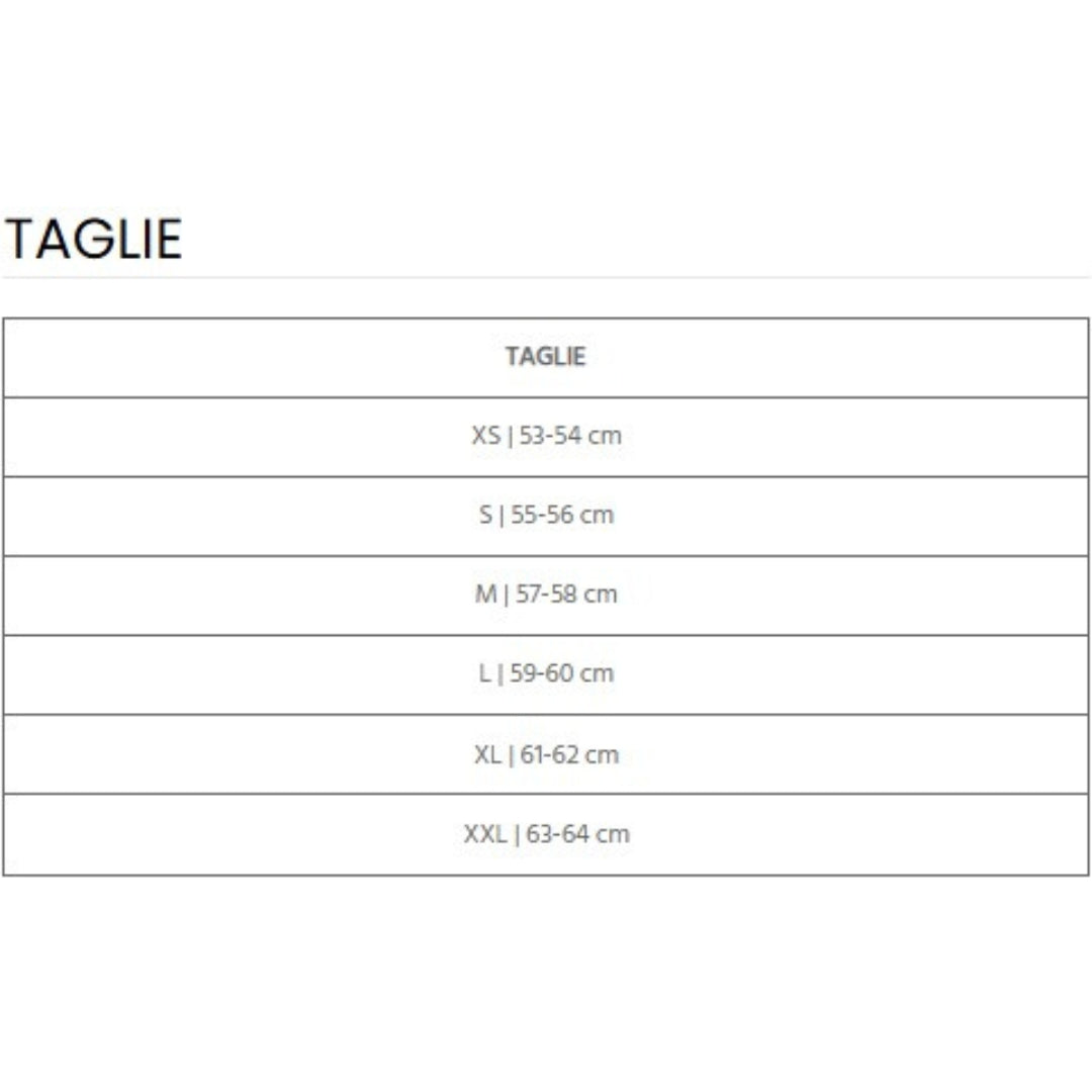 - Taglie: XS (53-54cm), S (55-56cm),M (57-58cm), L (59-60cm), XL (61-62cm), XXL (63-64cm)
