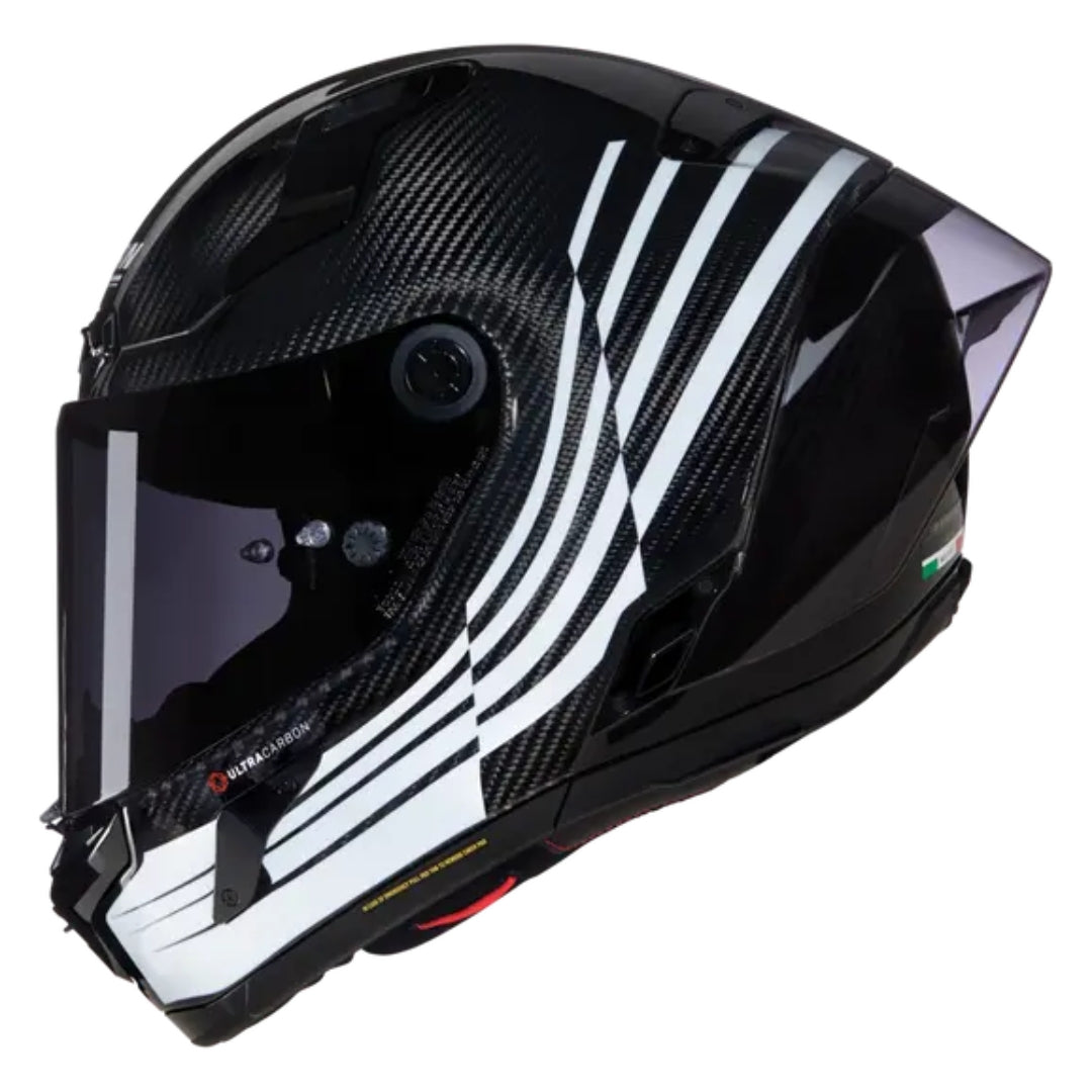 Nella lunga tradizione dell’eccellenza motoristica italiana, X-804 Ultra Carbon è concepito con una decisa propensione al mondo della velocità. Realizzato in fibra di carbonio, questo casco è interprete di pura avanguardia che si esprime attraverso concetti assoluti quali resistenza ineguagliabile, sicurezza ineccepibile, massimo comfort, leggerezza e finezza aerodinamica.