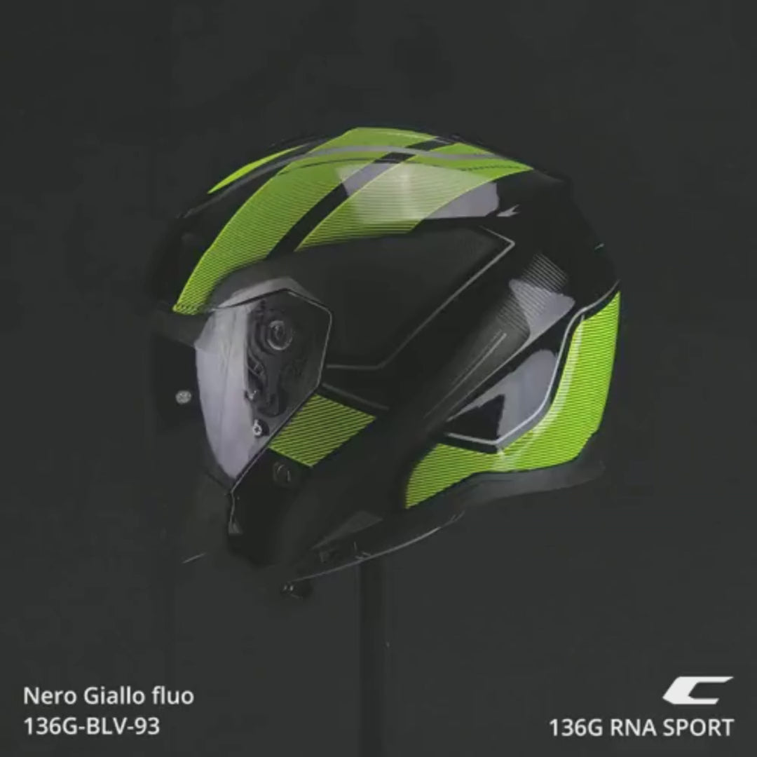 The CGM 130A Daytona Mono helmet is equipped with a long external visor for greater protection from the wind, with an expanded field of vision and with a predisposition for a PINLOCK lens. It features a ventilation system that uses the front air intakes to channel the air inside the helmet and expel the hot air from the rear extractors. The features are completed by the removable, thermoformed interiors with reflective bands and the internal extra-fumè retractable glasses.