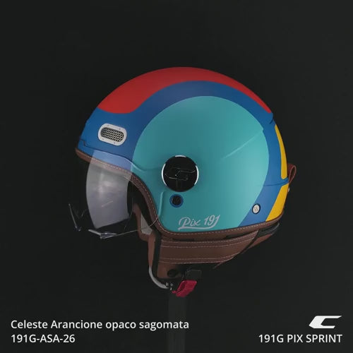 Ispirato allo stile classico italiano che ci contraddistingue da sempre il 191 PIX è un semi-jet estremamente compatto e leggero. Si differenzia dal tradizionale casco sferico grazie alle prese d'aria anteriori in metallo e ai tagli posteriori della calotta che alloggiano anche gli estrattori d'aria. Gli interni termoformati, completamente estraibili e lavabili sono provvisti di sottomento e collarino paranuca removibile con zip e, in tutte le varianti grafiche, impreziositi da dettagli in ecopelle marrone dallo stile vintage. Il PIX può essere equipaggiato con visiera lunga per una maggiore protezione dal vento o con visiera sagomata dalle linee moderne, le visiere intercambiabili tra loro condividono il sistema di fissaggio che nelle versioni con grafica è in metallo. Completano le dotazioni del casco la fibbia micrometrica, l'anello antifurto, l'elastico fermacinturino e nelle varianti con grafica il passa occhiali posteriore.