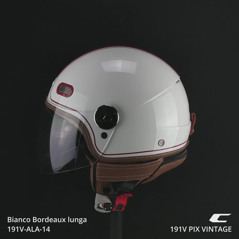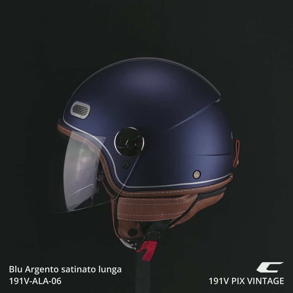 Ispirato allo stile classico italiano che ci contraddistingue da sempre il 191 PIX è un semi-jet estremamente compatto e leggero. Si differenzia dal tradizionale casco sferico grazie alle prese d'aria anteriori in metallo e ai tagli posteriori della calotta che alloggiano anche gli estrattori d'aria. Gli interni termoformati, completamente estraibili e lavabili sono provvisti di sottomento e collarino paranuca removibile con zip e, in tutte le varianti grafiche, impreziositi da dettagli in ecopelle marrone dallo stile vintage. Il PIX può essere equipaggiato con visiera lunga per una maggiore protezione dal vento o con visiera sagomata dalle linee moderne, le visiere intercambiabili tra loro condividono il sistema di fissaggio che nelle versioni con grafica è in metallo. Completano le dotazioni del casco la fibbia micrometrica, l'anello antifurto, l'elastico fermacinturino e nelle varianti con grafica il passa occhiali posteriore.