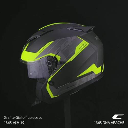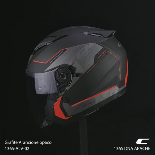 The CGM 130A Daytona Mono helmet is equipped with a long external visor for greater protection from the wind, with an expanded field of vision and with a predisposition for a PINLOCK lens. It features a ventilation system that uses the front air intakes to channel the air inside the helmet and expel the hot air from the rear extractors. The features are completed by the removable, thermoformed interiors with reflective bands and the internal extra-fumè retractable glasses.