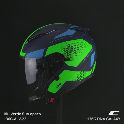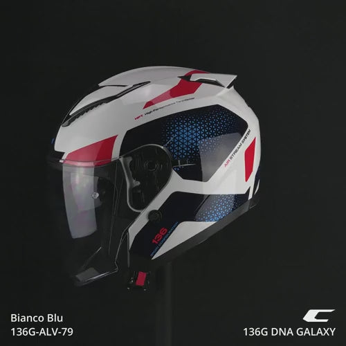 Distinguiti con sicurezza ed eleganza nei percorsi cittadini e nelle tratte extraurbane con il nuovo 136 DNA. Il casco eredita tutte le caratteristiche di design e comfort dell'apprezzato predecessore 130 Daytona ma con una nuova calotta in HPT (High Performance Terpolymer) e EPS multi-densità conforme al nuovo regolamento ECE-R 22.06. Caratterizzato da prese d'aria che accentuano le linee spigolose della calotta, realizzata in due misure, il 136 è equipaggiato con visiera esterna predisposta Pinlock 70 con sistema basculante a sgancio rapido e con una visiera interna parasole a scomparsa. Gli interni termoformati esagonali per un comfort di calzata ottimizzato sono realizzati con tessuto Extracool e bande alta visibilità per migliorare la sicurezza passiva. La predisposizione per interfono, la chiusura con fibbia micrometrica, l'anello antifurto e l'elastico fermacinturino completano le dotazioni del casco ideale per ogni scooterista.