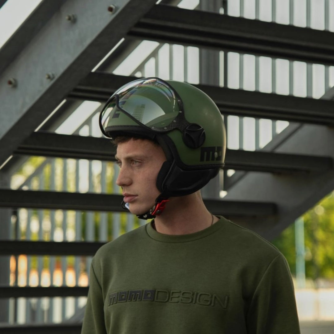 Casco Jet MomoDesign FGTR Classic Mono - Verde Militare Opaco/Nero - E2206