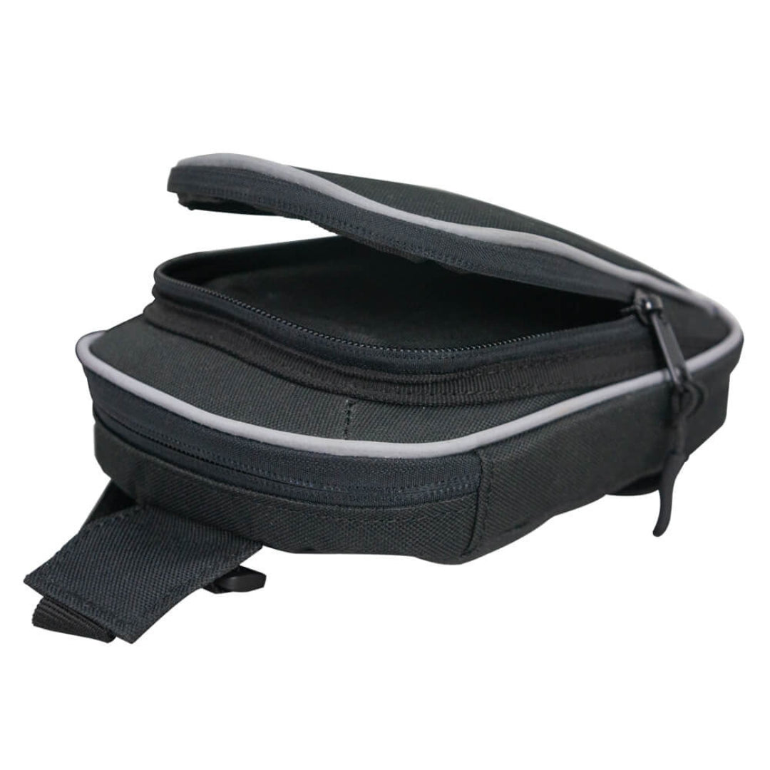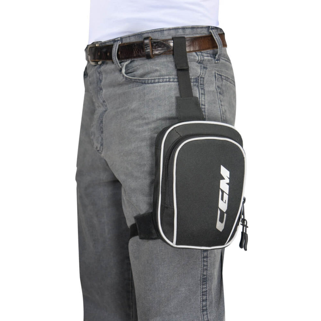 Leg bag in waterproof fabric with two roomy pockets with two-way zip, adjustable fastening straps at the waist and leg with practical opening/closing clips. Thanks to the removable waist belt, it can also be attached directly to the belt. It can also be worn around the waist as a pouch using two special loops. Reflective inserts.