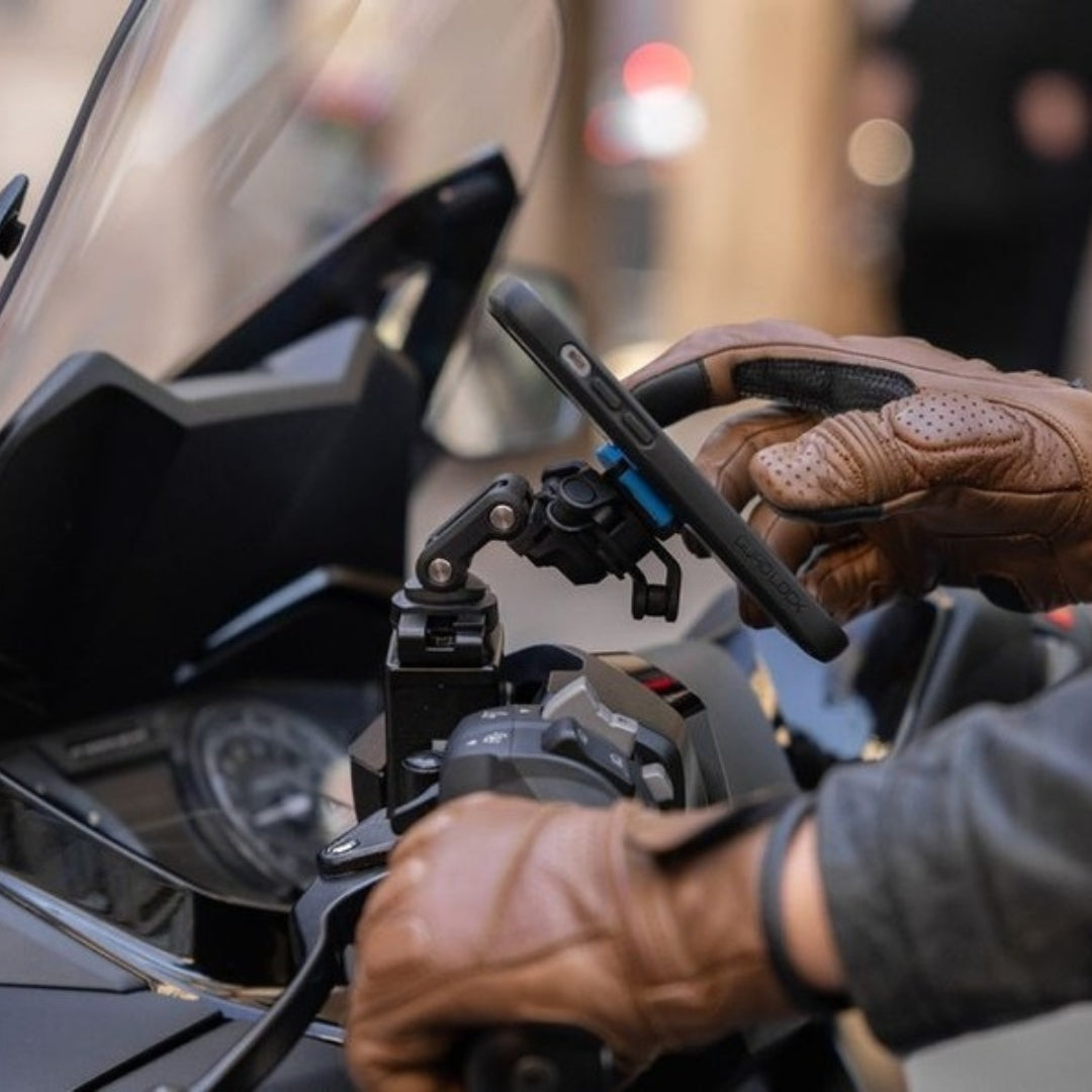 È possibile regolare l'inclinazione della testa e il braccio è dotato di più punti di rotazione per garantire la massima flessibilità nel posizionare lo smartphone con l'angolazione ottimale, senza interferire con i comandi dello scooter o della moto.