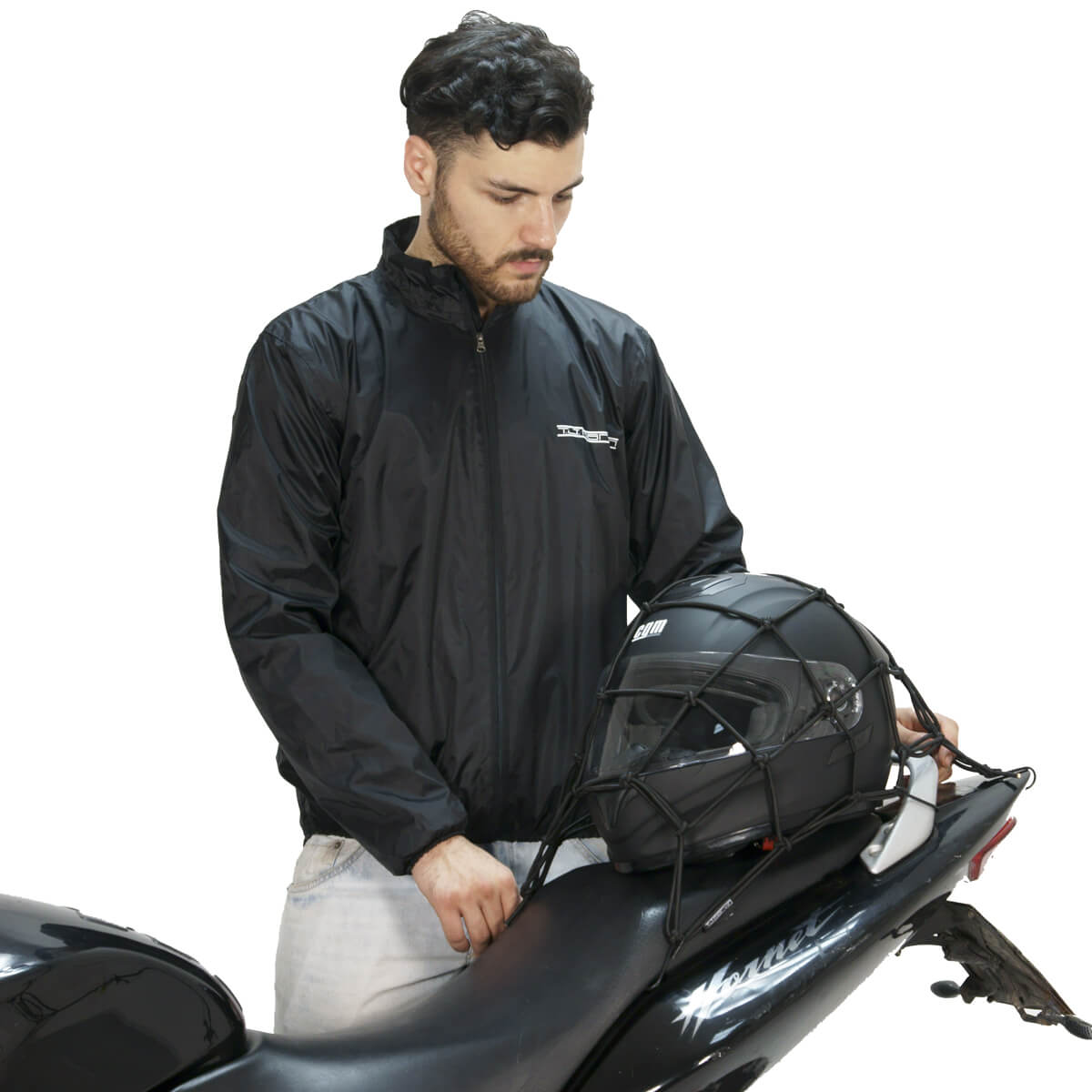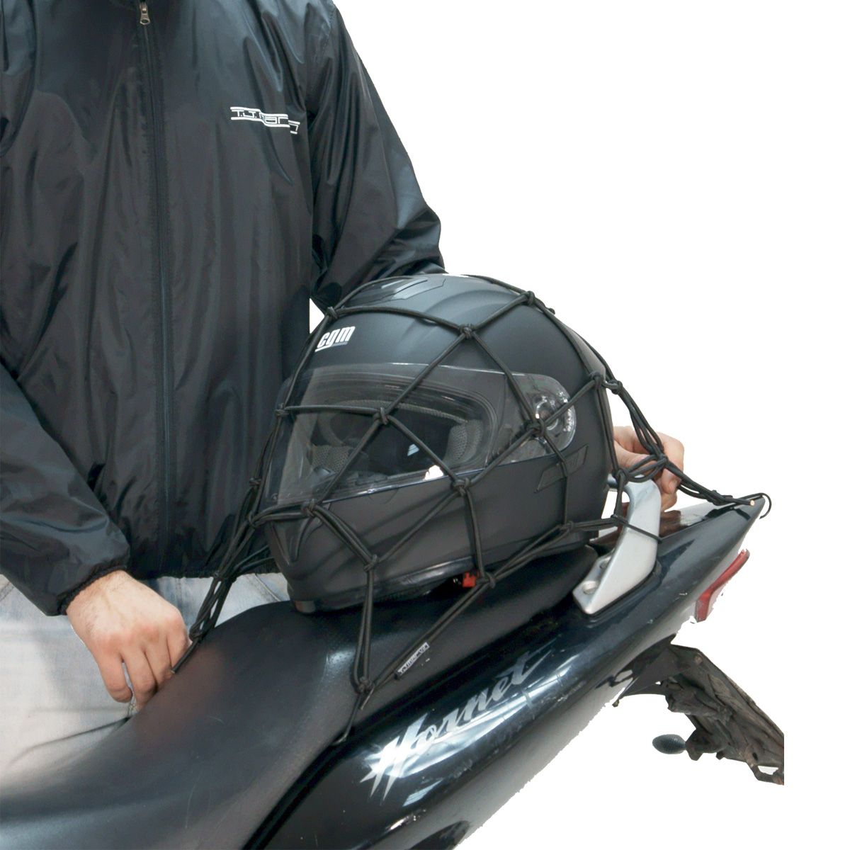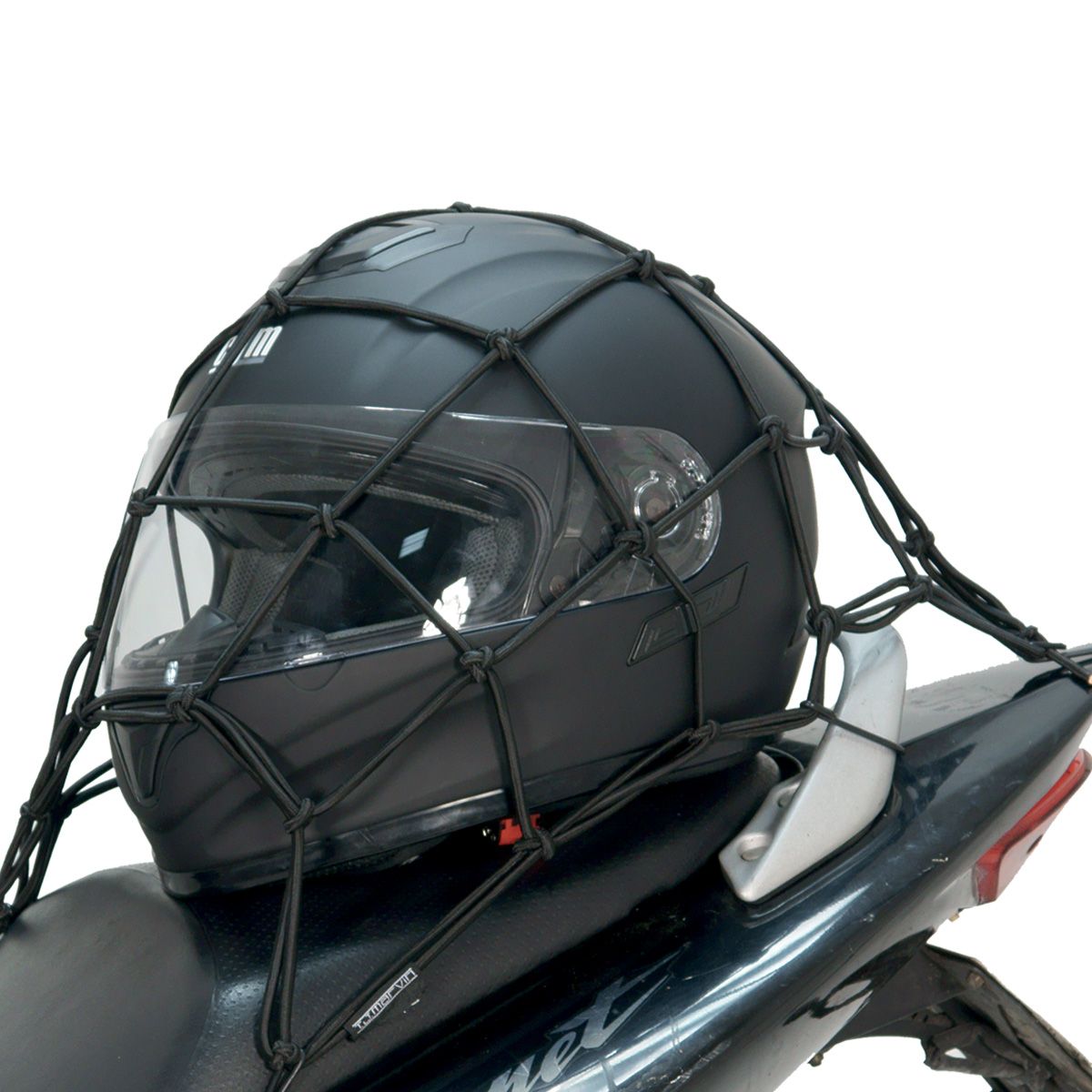 Elastic Spider net with tear-resistant PP coating. Dimensions 40 x 40cm. 4mm diameter. 6 adjustable hooks with anti-slip and scratch protection. Ideal for fixing helmets and bags on motorcycles and scooters.