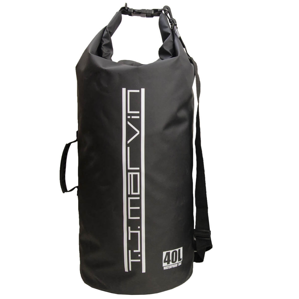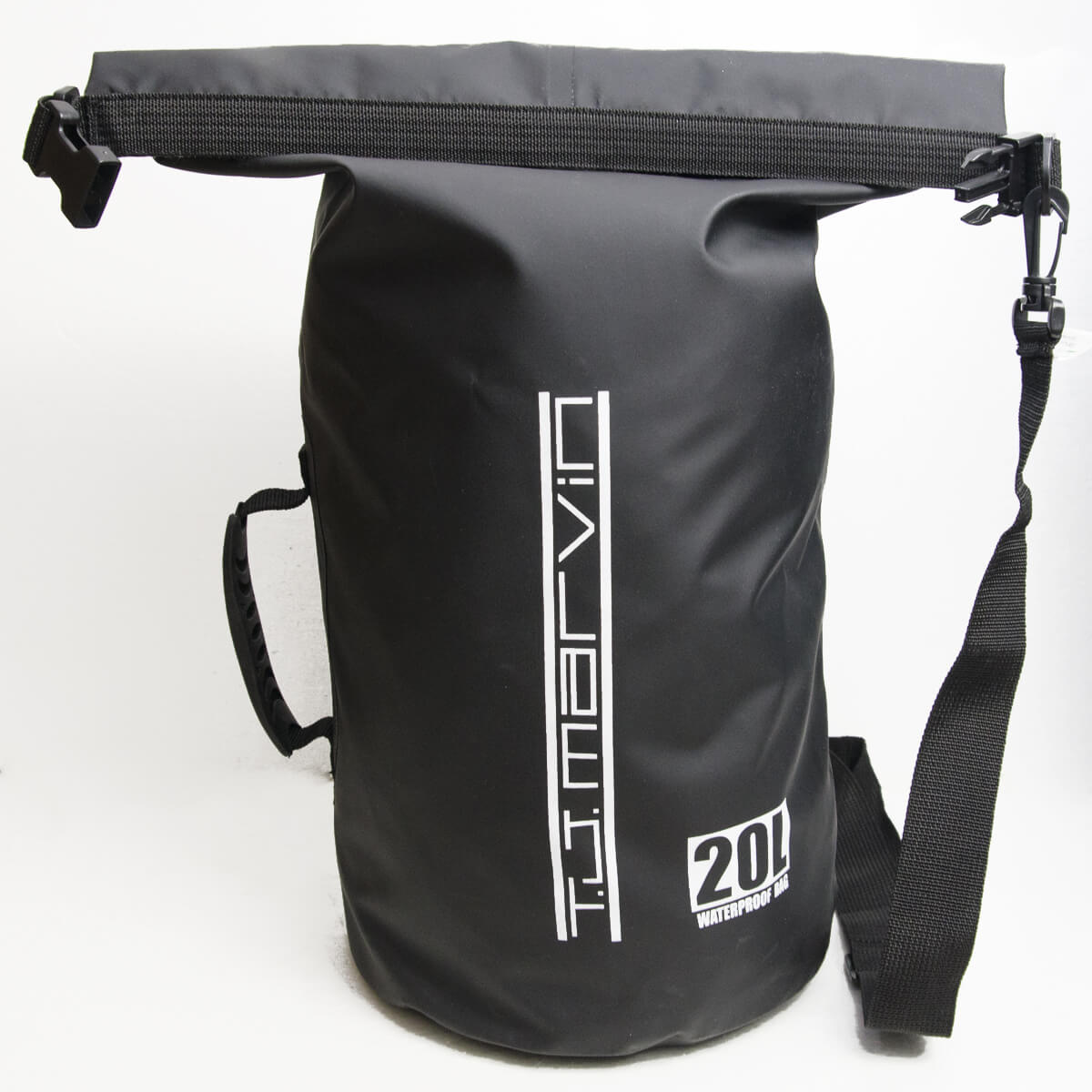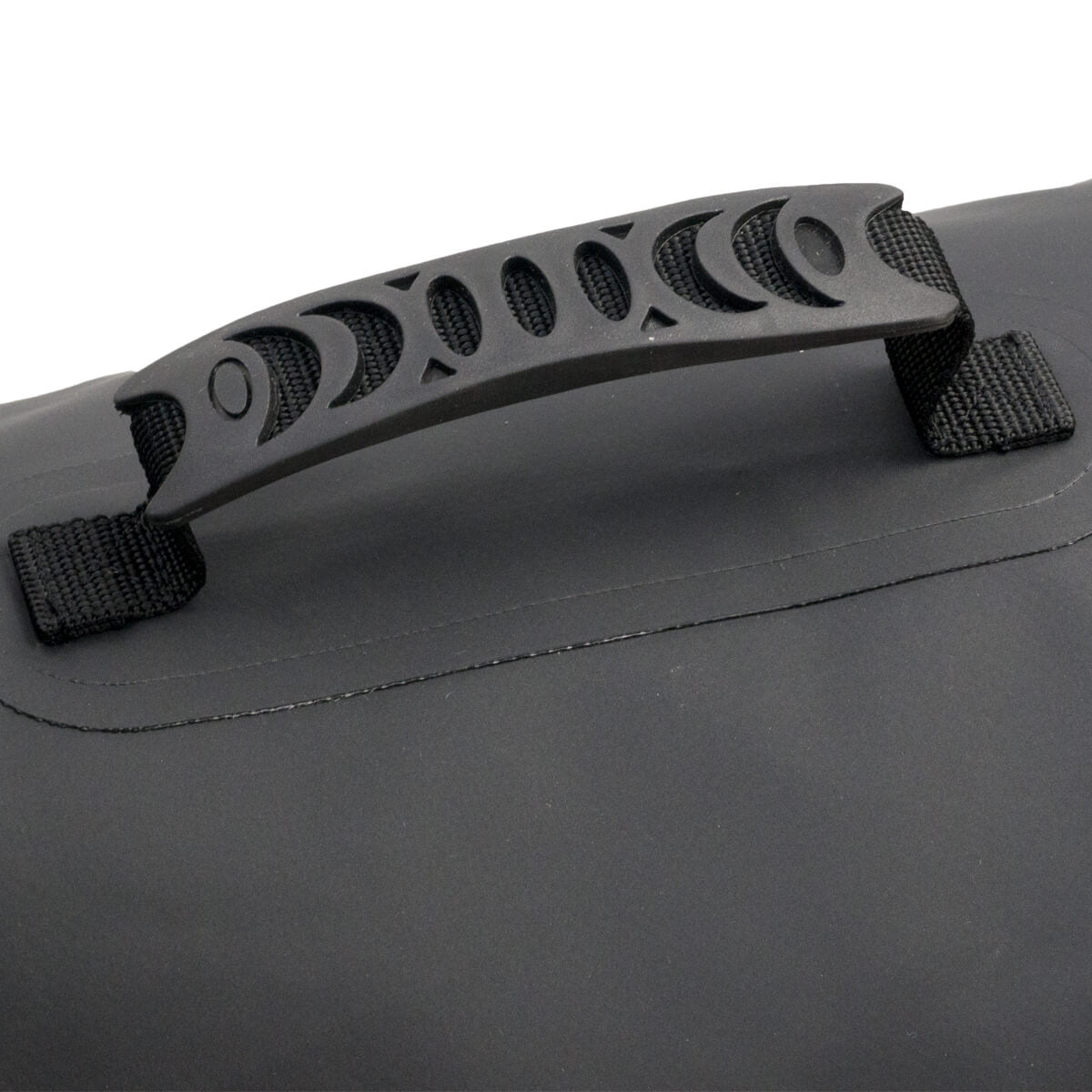 PVC waterproof bag. Equipped with heat-sealed seams and a watertight fold-over closure. Removable adjustable shoulder strap and reinforced non-slip handle. Two elastic straps included. Available in size S of 20 liters and size L of 40 liters.